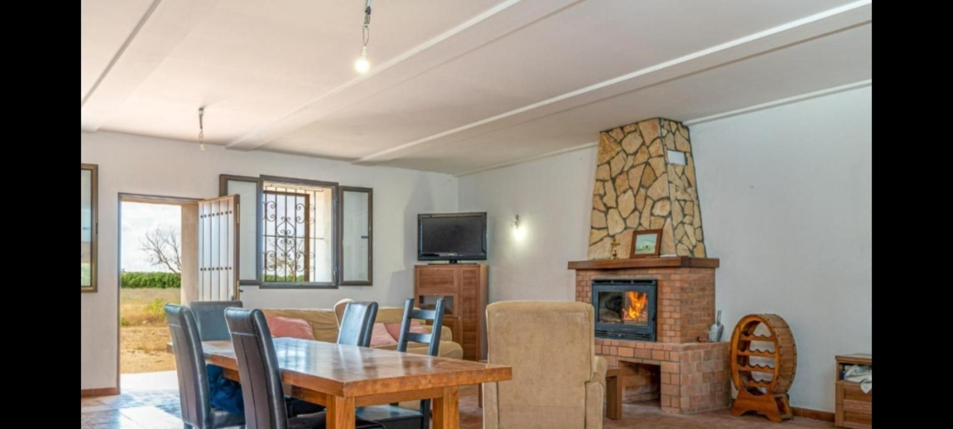 Salón comedor con gran chimenea
